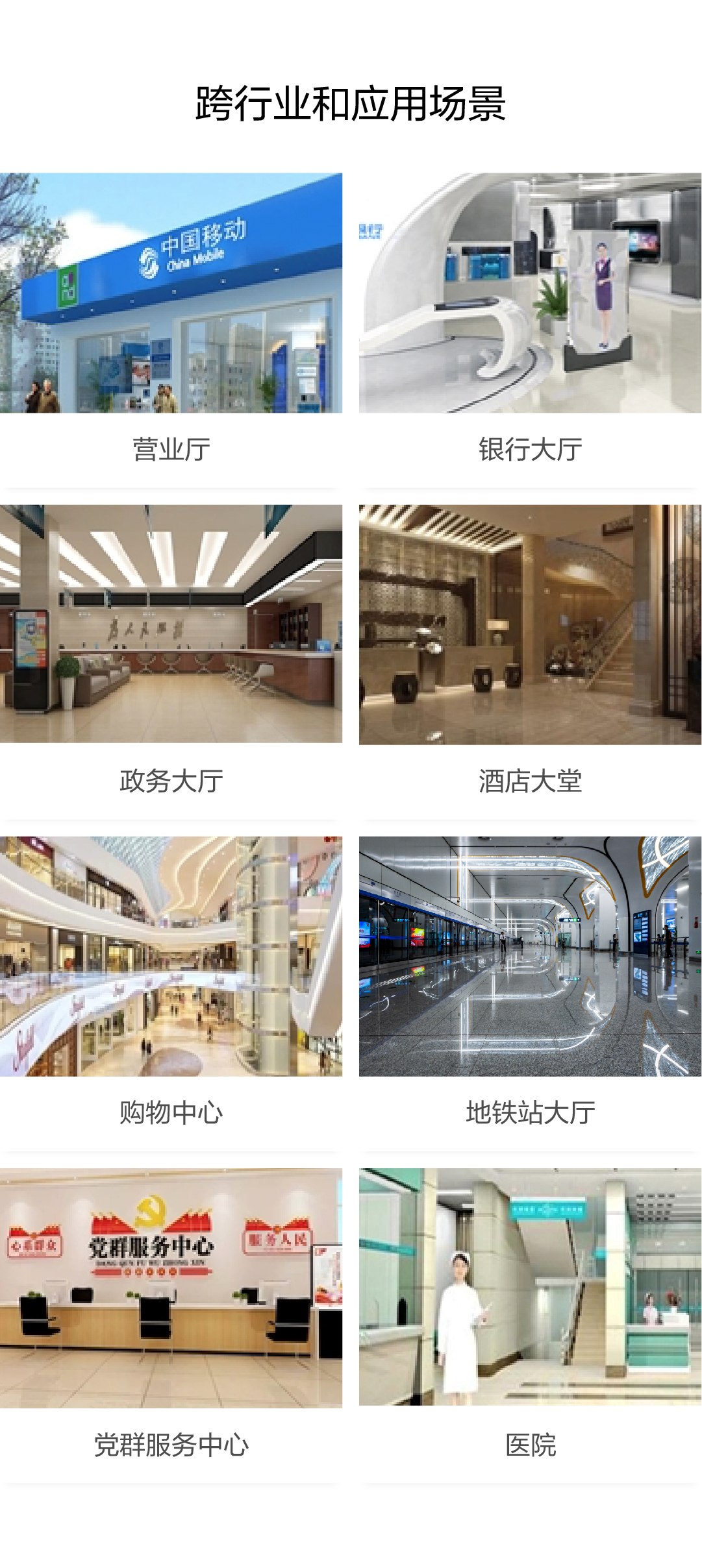 广泛应用于营业厅、银行大堂、政务大厅、购物中心、